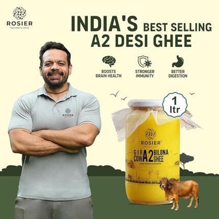 ROSIER A2 Gir Cow Ghee (1 litre) | Traditional Bilona Method A2 Gir Cow Ghee | Grassfed, Pure and Healthy Desi Cow Ghee (Glass Bottle – 1000 ML)