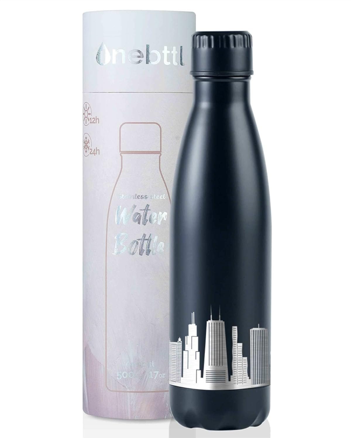 Chicago City Skyline Gifts, Chicago Gifts for NYC Lovers, Skyline Map 17oz/500ml Stainless Steel Insulated Water Bottle, Perfect for Birthday & Christmas