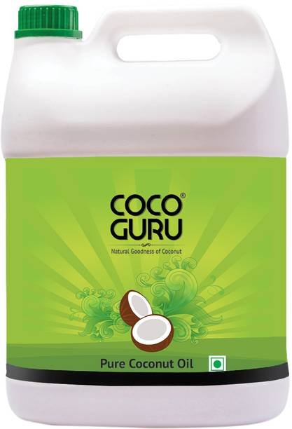 Cocoguru high grade coconut cooking oil is extracted from best quality copra obtained from drying fresh coconuts. Copra is fully dried, roasted and cut into pieces before feeding into expeller for oil extraction. Oil then is thoroughly filtered and packed. Roasting of copra increases the shelf life of oil and gives it a rich aroma and taste still retaining the natural goodness of coconut. Cocoguru coconut oil’s quality reflects in its physical properties, below 0.5 Free fatty acids, Iodine value of around 8.5, Moisture below 0.10%, golden yellow colour and 12 months shelf life. Cocoguru coconut oil is of edible grade and can be used for cooking, hair care, skin care, baby care and oil pulling. Edible Grade, 100% pure, natural, unrefined and filtered suitable for cooking. No artificial flavours, no preservatives, no chemicals, no trans fats, no mineral oils and gluten-free. Grade IA Raw as per Bureau of Indian Standards (BIS) for Coconut Oil (IS:542-1968). Copra is dried and roasted, oil is extracted through the expeller and double filtered through the filter press. Cooking, Deep frying, Salad dressing, food flavouring, Keto diet and raw consumption. Also used for hair care, skincare or body massage, oral care or oil pulling, lighting lamp and soap making. Contains good cholesterol for a healthy heart, Easily digestible medium – chain fatty acids improves metabolism, boosts energy and aids in weight loss. Good anti-bacterial, anti fungal, antiviral properties help in fighting rashes and diseases. Appears golden yellow, viscous liquid, solidifies below 25 degrees. Has aroma and taste of roasted copra. Floats in water with a specific gravity of 0.91. Shelf life of 12 months when stored in a closed container. Stable at high temperatures and doesn’t break down. Jerry Can has a handle that enables easy holding of the container. Strong re-usable container preserves the oil for a longer time. Cap is leak proof and tamper proof.