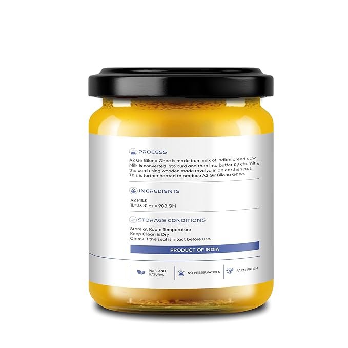 - NATURAL GHEE 100%: Our Gir A2 Ghee is free from pesticides and chemicals. At our farm, cows are grass fed and raised in open pastures. Young, old, and sick cows are not milked. Also, non-milking days are planned for each Gir Cow