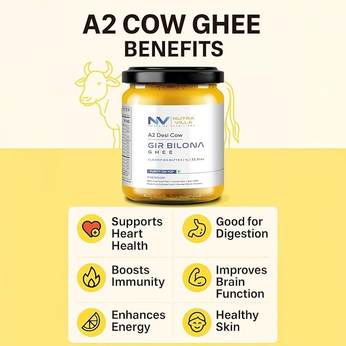 Nutravilla A2 Gir Cow Ghee Organic Grassfed Homemade Pure Gir Cow Ghee | Jar Of 1 Liter | Handcrafted By Farmers With Traditional Bilona Method