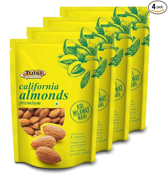 Tulsi California Almonds Premium 800g (200g x 4) | Whole Almond | Rich in Vitamins & Minerals | Good for Health | Loaded with Antioxidants | Nuts & Dry Fruits|Badam Giri | Healthy Nuts | (Pack of 4)