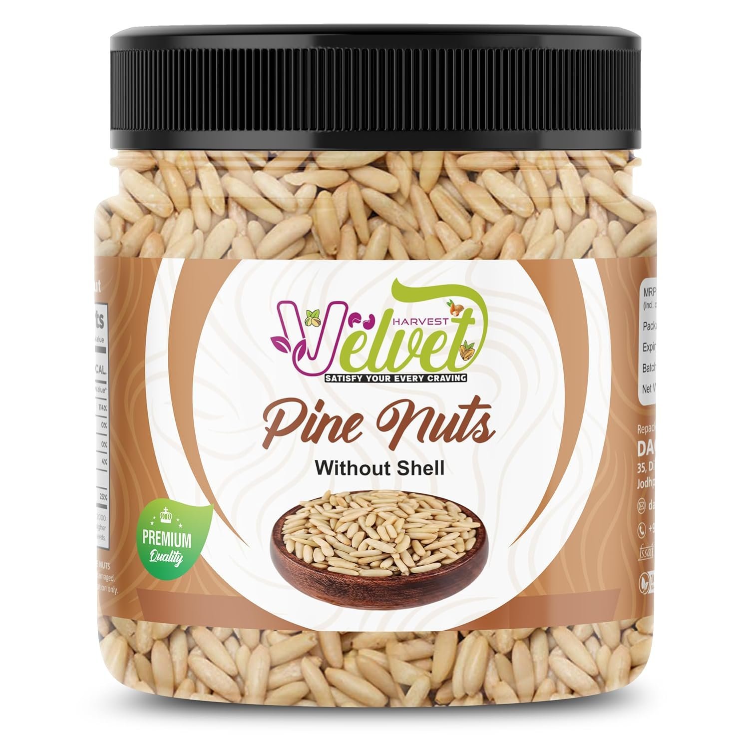 VELVET HARVEST Chilgoza Dry Fruits Without Shell nut Jumbo Size Pine Nuts (Chilgoze/Chilgoja) | Pine Nuts without Shell | Chilgoza Giri | Chilgoja Seeds | Premium Whole Chilgoza…