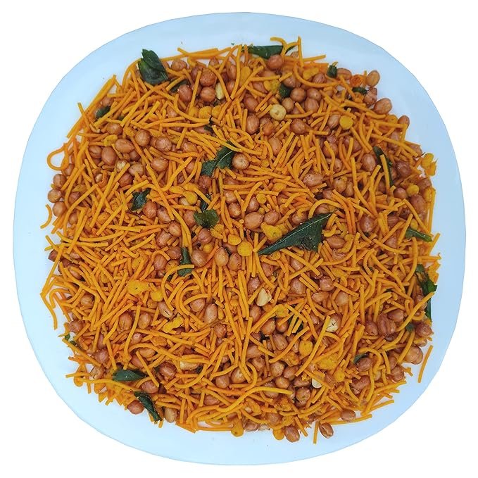 - Combination of sev, boondi , fried peanut, fried potatoes and spices.