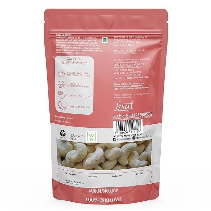- Wonderland Foods Whole Cashew Nuts are 100% vegetarian. Vegetarian diets are richer in nutrients and have a number of health benefits. Nuts and dry fruits are considered to be amongst one of the healthy snacking options. Use it as a everyday snacking delight.